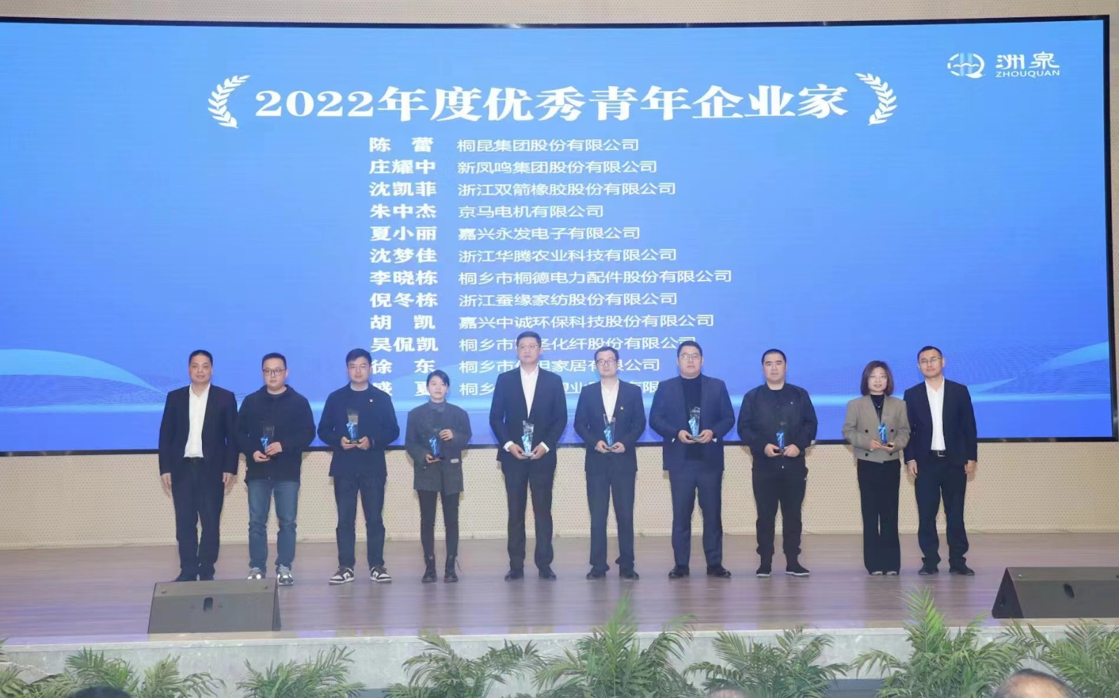 洲泉镇2022年度经济工作乐竞体育股份荣获2022年度突出贡献企业》、《2022年度科技人才先进企业》,副董事长沈凯菲荣获2022年度优秀青年企业家》,授于乐竞体育股份亲清新型政商关系监测点》。