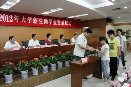 十年寒窗,金榜题名,金秋助学,成就梦想。8月27日下午,市慈善总会在市行政会议中心举行2012大学新生助学金发放仪式。公司总经理助理兼人力资源与企管部经理郎洪峰代表公司出席了此次助学金发放仪式。