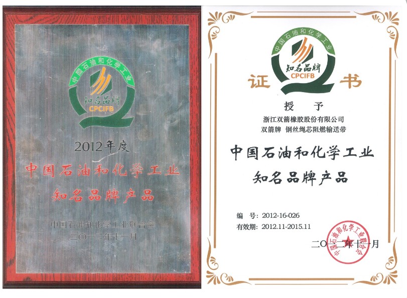 乐竞体育牌输送带被评为2012年度中国石油和化工行业知名品牌产品