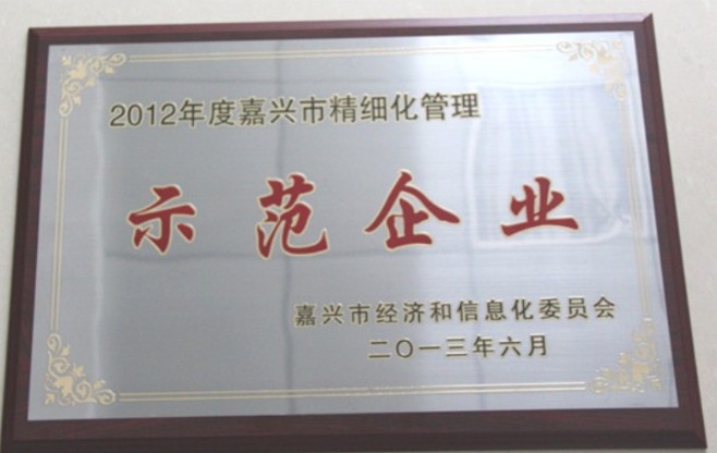 公司被评为2012年度嘉兴市精细化管理示范企业