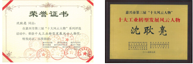 董事长沈耿亮荣膺嘉兴市第三届“十大风云人物”称号