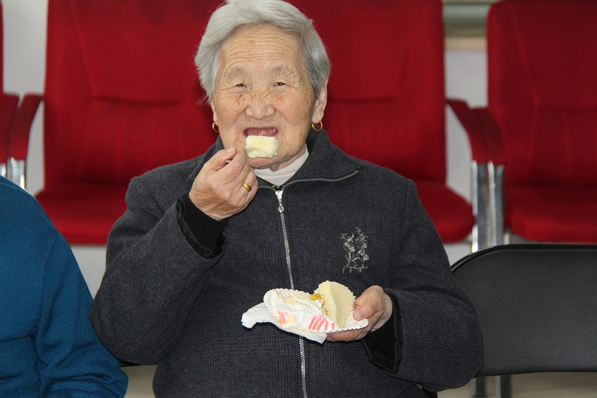 随后,两位寿星代表一起上台,与大家齐唱生日歌,在祝福声中吹灭蜡烛,笑的像孩子般开心,大家一起吃蛋糕,共同分享着这份喜悦和幸福。看着眼前的蛋糕,听着像自己子女一样的生日歌声,老人们很感动。
